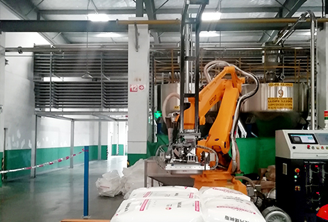 視覺引導(dǎo)機器人移動到對應(yīng)托盤的物料托架位置,夾取產(chǎn)品托盤,搬運至輸送帶指定位置上。