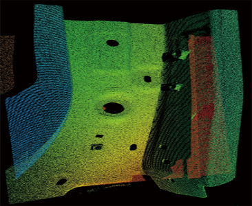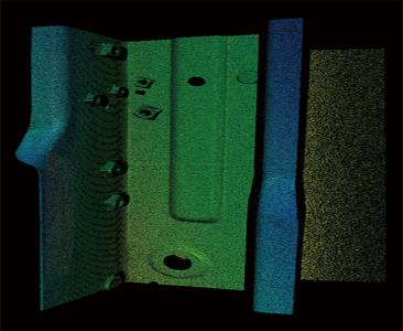 針對汽車鈑金件、焊接件實現(xiàn)在線檢測,利用高速3D相機(jī)對鈑金件、焊接件外觀及結(jié)構(gòu)進(jìn)行三維掃描,針對實時掃描的產(chǎn)品模型,通過3D點云圖像處理算法自動識別產(chǎn)品尺寸、形狀、類型、裝配質(zhì)量、螺母有無、螺母規(guī)格等參數(shù)進(jìn)行實時檢測。